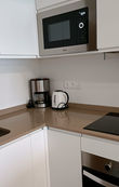 🍳 Open-Plan Living: A modern kitchen integrated into the lounge, equipped with a ceramic hob (3 burners), microwave, Nespresso machine, toaster, and blender.
